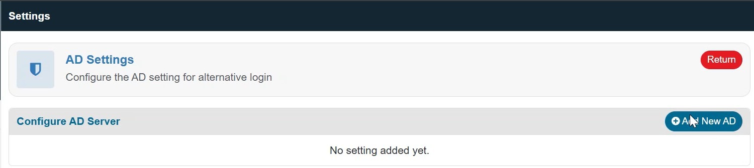 Open the XPressEntry Web Console and go to Settings > AD Settings, select “Add New AD”.